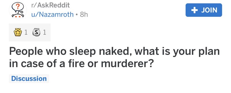 AskReddit Thread For Naked Sleepers Strikes Comedy Gold